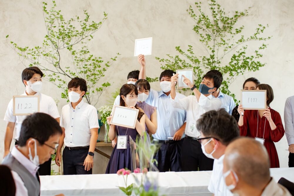 それぞれのテーブルの中で、「味覚に自信がある人」「力に自信がある人」「運の良さに自信がある人」「集中力に自信がある人」など、お題に合わせて1名ずつ代表者を選んでいただきます。