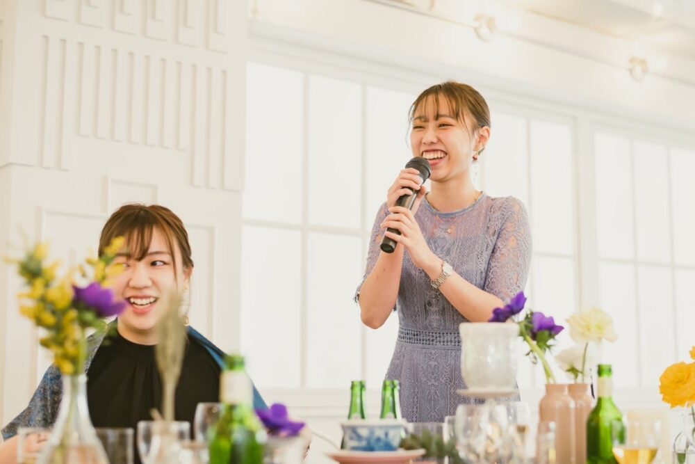 たとえば「新郎新婦との思い出のエピソード」など、テーマを決めてゲストに順番にお話いただきます。