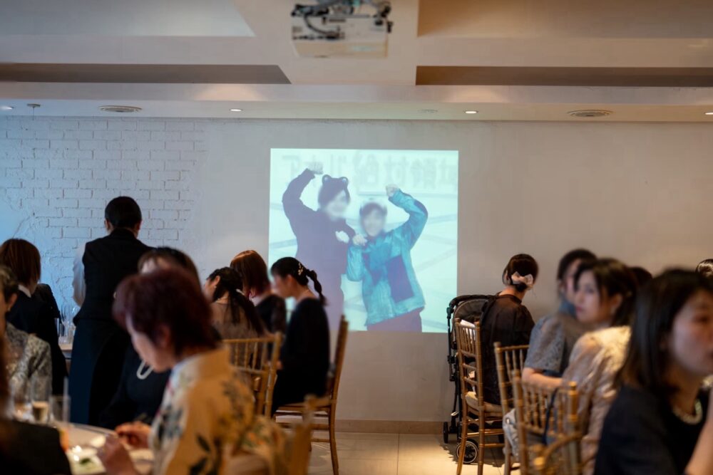 あらかじめゲストから「おふたりとの思い出の1枚」をもらっておき、当日スクリーンに映しながらエピソードをお話いただくと、会場も一気に引き込まれます。
