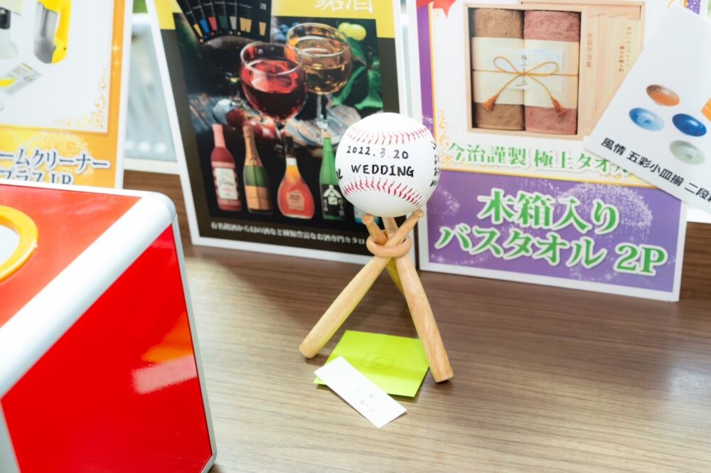 中には「新郎新婦のサイン入り野球ボール」というユニークなアイテムもあり、こちらは大人気で複数手が上がっていました。